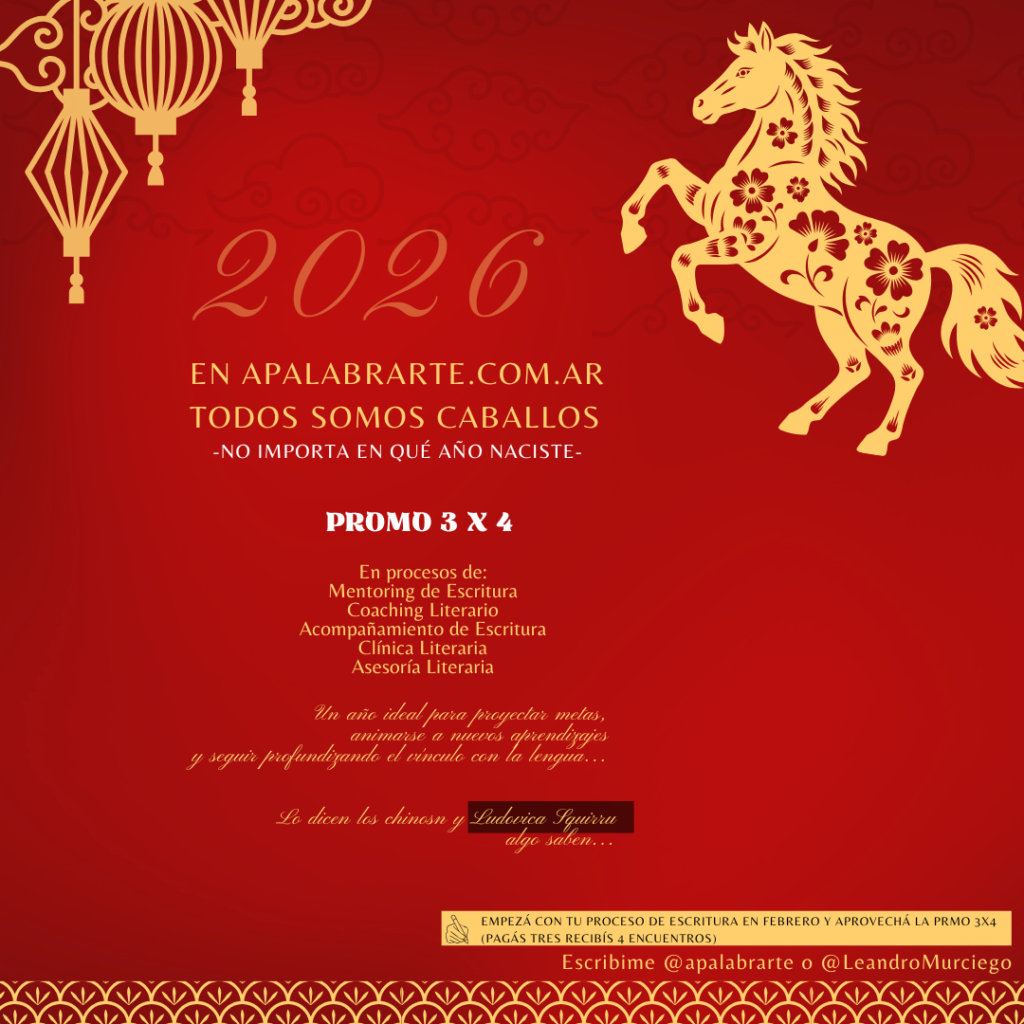 Quiero que este 2026 sea el inicio de grandes cosas para muchos, para TODOS los que se animen. Quiero que puedan dar inicio a nuevos desafíos (artísticos, literarios), para cumplir viejas metas o sueños postergados (escribir un cuento, una novela, un poemario, un libro), sumar nuevos aprendizajes y seguir profundizando el vínculo con la lengua (que es empoderadora, sanadora y que nos permite trascender).