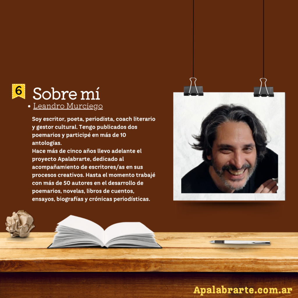 Soy escritor, poeta, periodista, coach literario y gestor cultural. Tengo publicados dos poemarios y participé en más de 10 antologías.