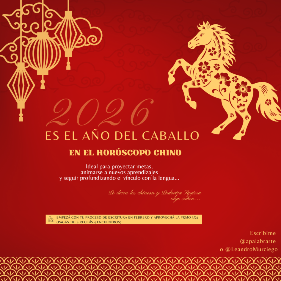 Según el horóscopo chino, 2026 será ideal para los Caballos de Fuego (es decir, para los que nacieron en 1906 y en 1966), según ese sistema astrológico milenario que está basado en ciclos de 12 años este período resulta ideal para que los Caballos. Éstos en la cultura china, simbolizan la energía, el movimiento, la perseverancia y el deseo de avanzar. En el horóscopo es un signo asociado a los desafíos, la acción y la búsqueda de nuevos horizontes. Las predicciones de para los equinos, en especial los de fuego, es que este ciclo que acaba de comenzar resulta ideal para proyectar metas, animarse a nuevos aprendizajes y seguir profundizando el vínculo con la lengua y la cultura china.